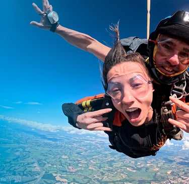 Agende seu salto duplo com a nossa equipe e viva sua primeira experiência no céu!